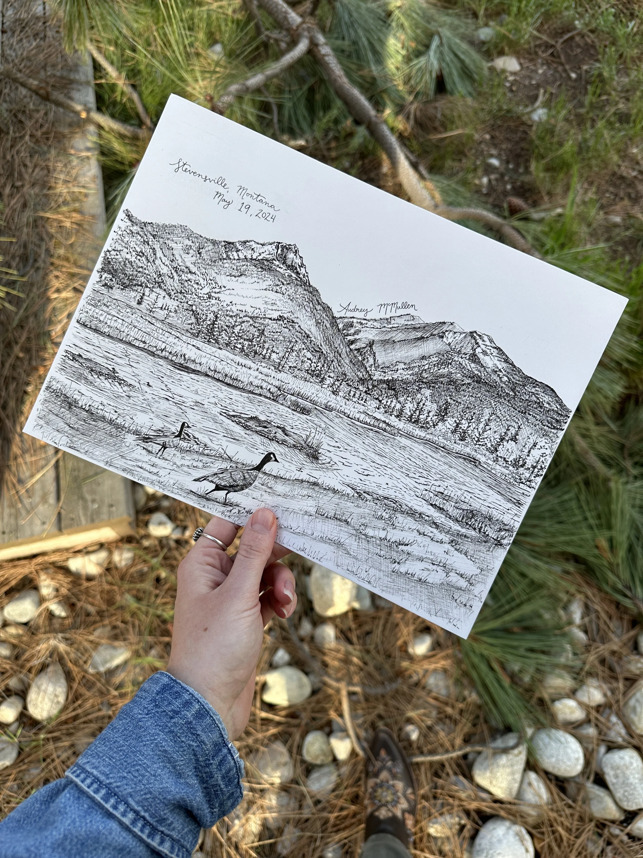 At the end of filming Yellowstone: Season 5, Part 1, I created a small drawing of a range of mountains nearby and gave it to crew members as a reminder of happy memories in Montana.